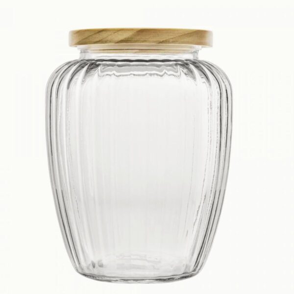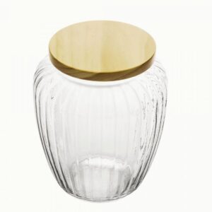 Mantenha seus alimentos organizados e frescos com o Porta Mantimento de Vidro com Tampa de Pinus da Wolff.