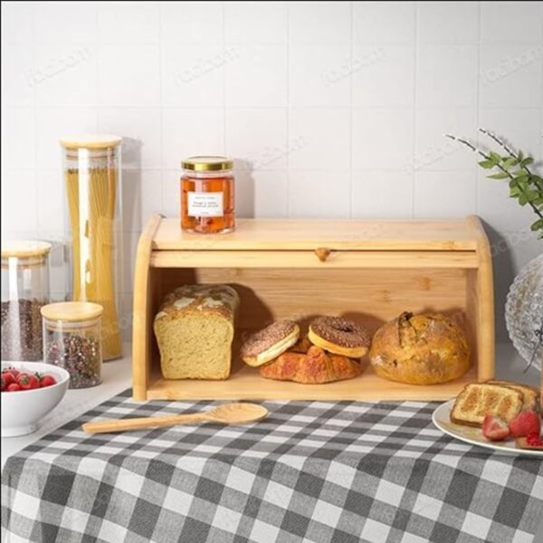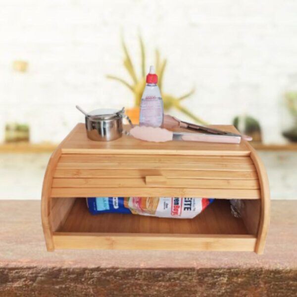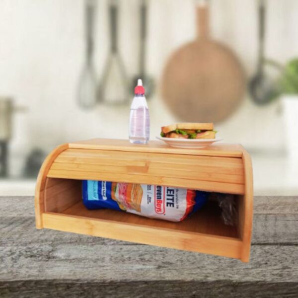 Além de armazenar alimentos, o topo do porta pão pode ser usado como uma prateleira adicional. É perfeito para apoiar utensílios e tigelas durante o café da manhã ou outras refeições, proporcionando ainda mais praticidade na hora de servir.