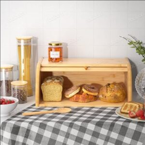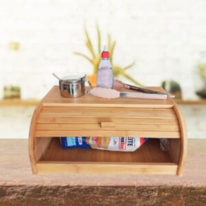 Porta Pão Bambu Tampa Retrátil 40×27,5×16,5cm
