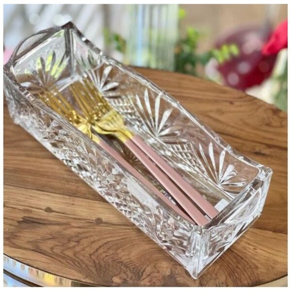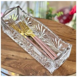 Feito em cristal transparente de alta qualidade, este organizador de talheres possui medidas ideais para acomodar seus utensílios com praticidade e estilo. Perfeito para adornar sua mesa com um toque de classe, é uma escolha excepcional para quem valoriza tanto a estética quanto a utilidade na organização de utensílios de cozinha.