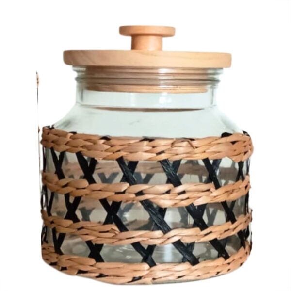Pote Mantimento Vidro Revestido Vime 2itros Tampa Hermetica Madeira