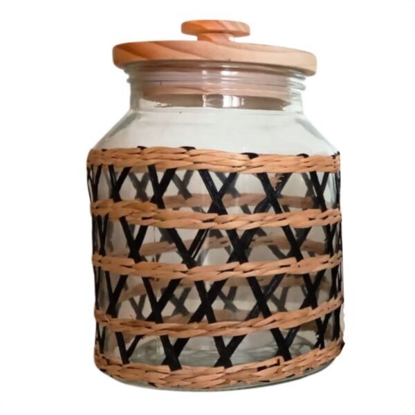 Pote Mantimento Vidro Revestido Vime 3Litros Tampa Hermetica Madeira