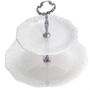 Prato Duplo para Bolo e Doces 27 e 19cm Porcelana Branca Wolff