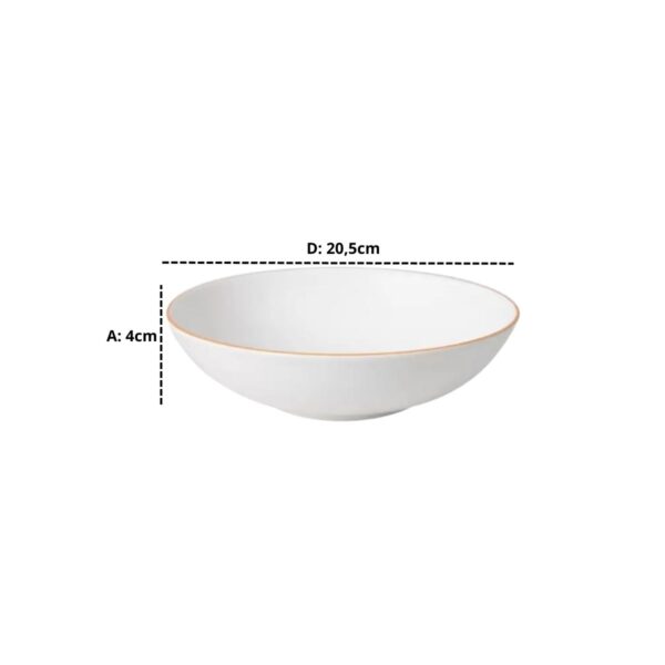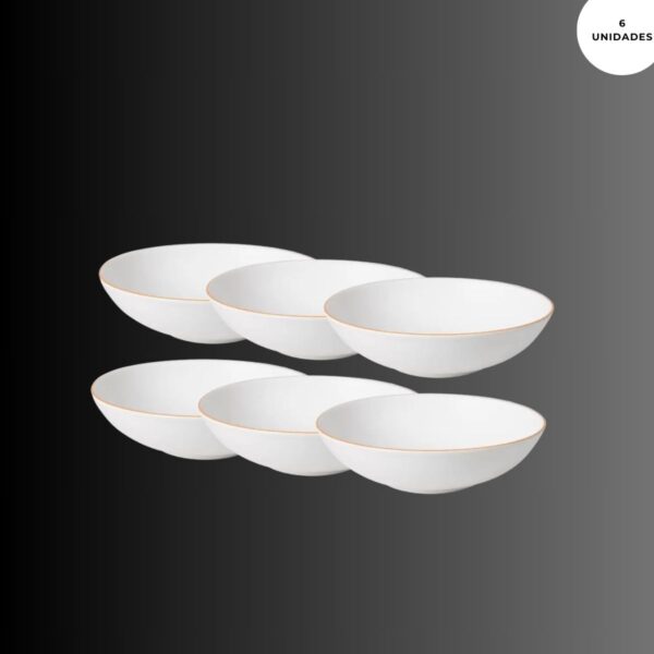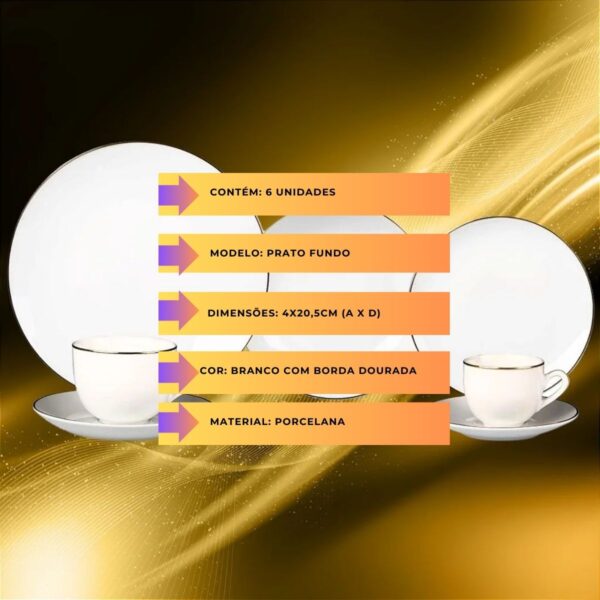 Este conjunto inclui seis pratos fundo com um diâmetro de 20,5 centímetros. Além de sua estética impressionante, esses pratos são altamente funcionais. Com uma profundidade adequada, são ideais para servir sopas, ensopados, risotos e outros pratos que demandam uma capacidade maior.