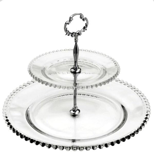 Prato para Bolo e Doces 2 Andares Cristal Pearl 28 e 20cm