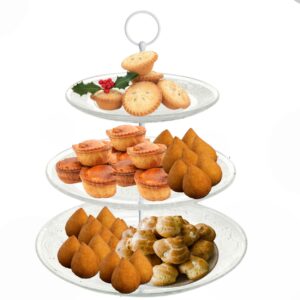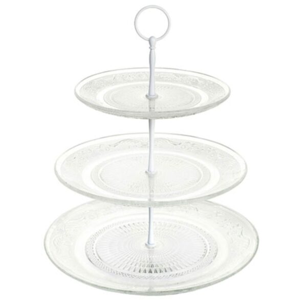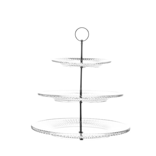 O Prato Triplo de Vidro Decorado para Doces,Salgados,Bolos, Frutas é perfeito para adicionar elegância à sua mesa posta para cafe e lanche. Com tres níveis, você pode exibir uma variedade de doces de forma organizada e sofisticada. Este prato é novo e de alta qualidade,garantimos durabilidade e estilo para suas ocasiões especiais. Adquira já o seu e encante seus convidados com uma apresentação impecável.