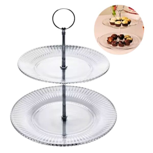 Prato para Bolo e Doces Cristal Renaissance 2 Andares 18,5 e 31,5cm Lyor