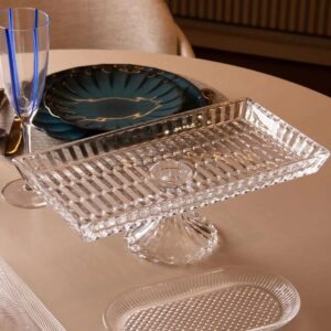 Prato para Bolo Geneva Cristal Retangular com pé 34,5×18,5x12cm Wolff