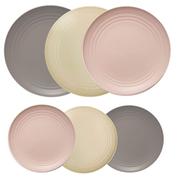 Conteúdo: 06un prato raso sendo 2un na cor rosa, 2un na cor bege, 2un na cor marrom.