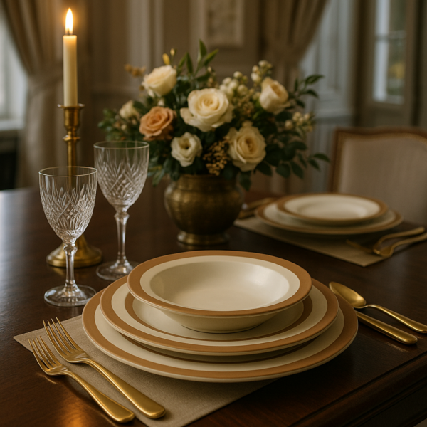 Prato Raso,Fundo e Sousplat Bege com Filete Amassada 18un Scalla