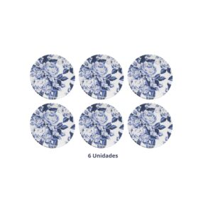 Prato Sobremesa Cerâmica 6un Floral Azul 20cm Cim Toys