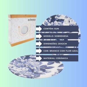 O conjunto de seis pratos de sobremesa de cerâmica oferece uma opção encantadora e prática para finalizar suas refeições com estilo. Com um delicado padrão floral azul sobre um fundo branco, estes pratos adicionam um toque de elegância à sua mesa.