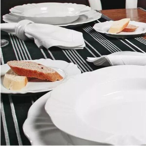 As formas clássicas que nunca saem de moda ganham uma releitura moderna e sofisticada no modelo Soleil White da Oxford. Garantia de uma mesa harmoniosa com um toque de nobreza. O branco é versátil e permite vários tipos de combinação numa decoração. Além disso, é ideal para quem gosta de deixar o destaque da refeição para os alimentos servidos. O requinte e a sofisticação da porcelana, refletem a Linha Oxford.Fabricado com material de alta resistência e muito mais qualidade.Sua mesa poderá ser decorada da maneira que desejar pois os pratos fundos combinam com varios modelos, devido as suas estampas e formas.