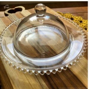 Composição: 01un de Prato de Cristal com Tampa com diametro de 20cms e altura de 12cm,podendo ser usado para Queijo ou mesmo um Bolo Pequeno.