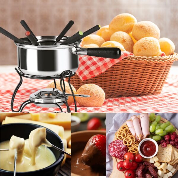 Aparelho fondue 10pc aço inox base metal inox/preto – Wolff