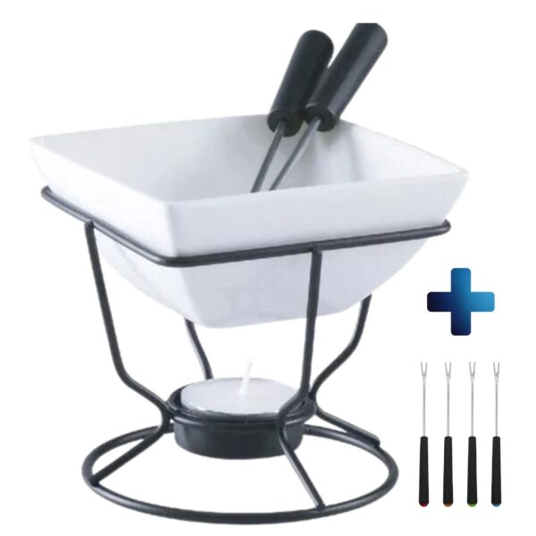 Rechaud para Fondue Bruges Cerâmica Chocolate e Queijo com 9pç
