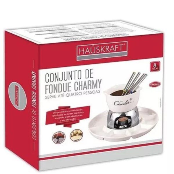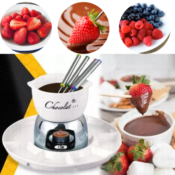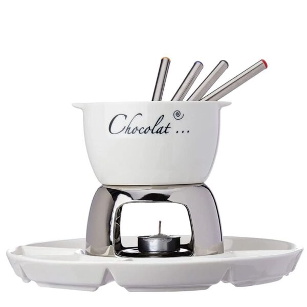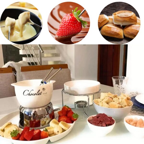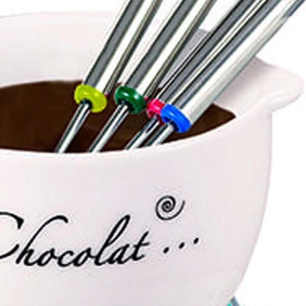 Rechaud para Fondue Charmy Cerâmica Chocolate e Queijo com 8pç