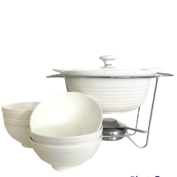Rechaud Porcelana Redondo com Bowls brancos Porcelana 7pç Dynasty