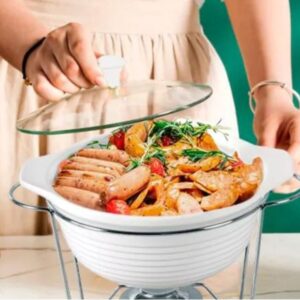 Não perca mais tempo e adquira já o seu réchaud redondo de 2,3 litros. Com este conjunto completo, você poderá servir sopas e caldos quentes,feijoadas com praticidade e elegância, impressionando seus convidados e garantindo uma experiência gastronômica inesquecível.