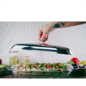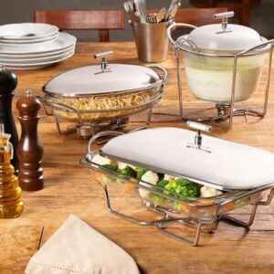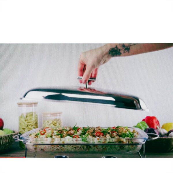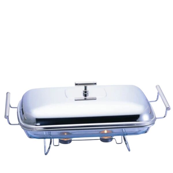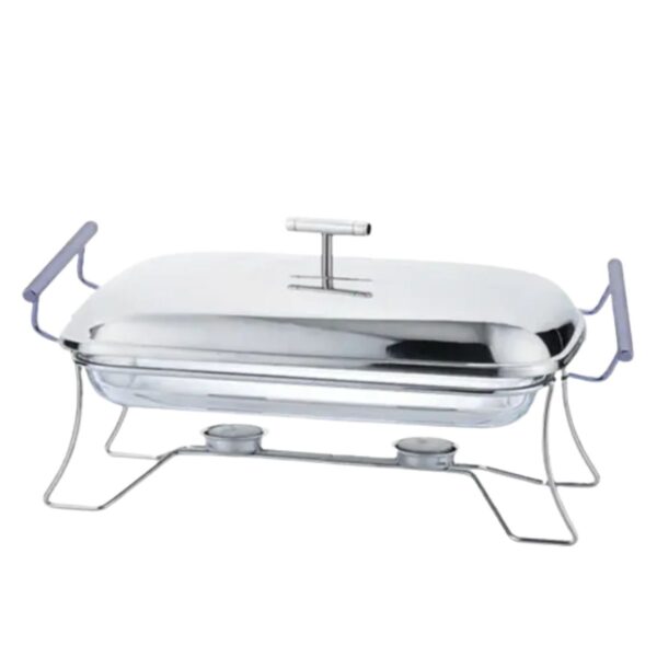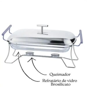 Rechaud Retangular para Sopa Vidro com Suporte Tampa e Concha Inox Fracalanza