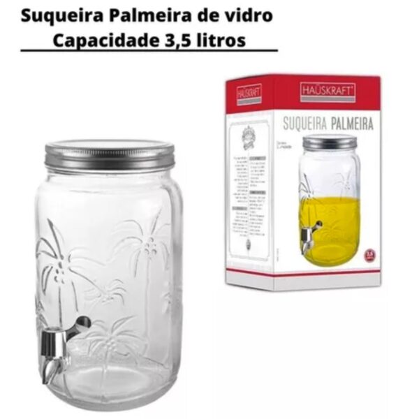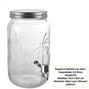 Suqueira Dispenser para Agua Sucos e Refrigerantes Vidro 3,5lts Palmeira