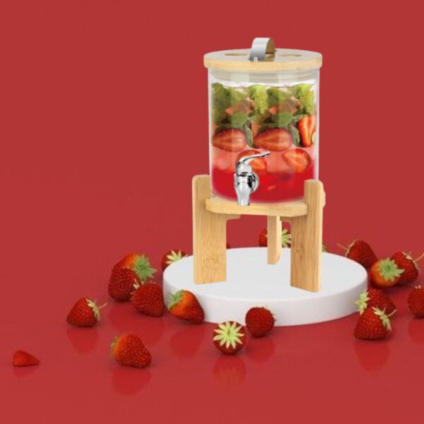 Suqueira Mattine Em Vidro Com Suporte e Tampa Bambú Com 2,5L