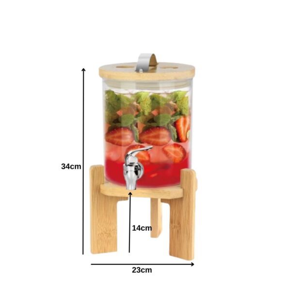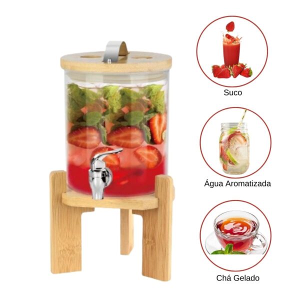 Material: Suqueira em Vidro Borossilicato, Suporte e tampa em Bambú e Torneira de plástico.