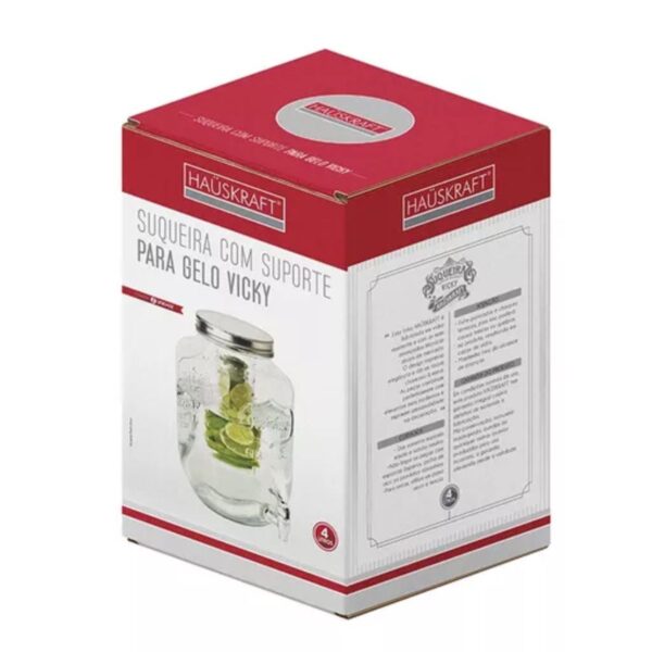 A Suqueira com Suporte para Gelo 4lt Hauskraft é um utensílio de mesa elegante e prático, perfeito para servir sucos, água saborizada, chá gelado e outras bebidas refrescantes em eventos e ocasiões especiais.