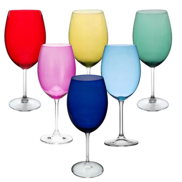 O Conjunto inclui seis taças coloridas em tons vibrantes, que são perfeitas para adicionar um toque de cor e diversão à sua mesa.