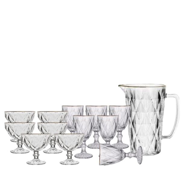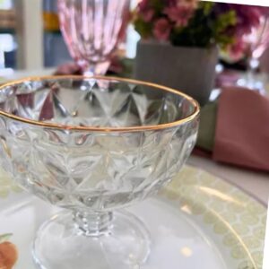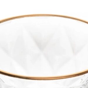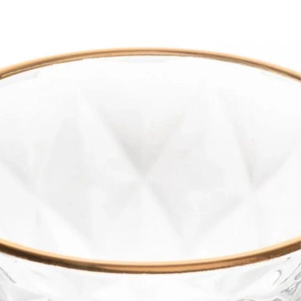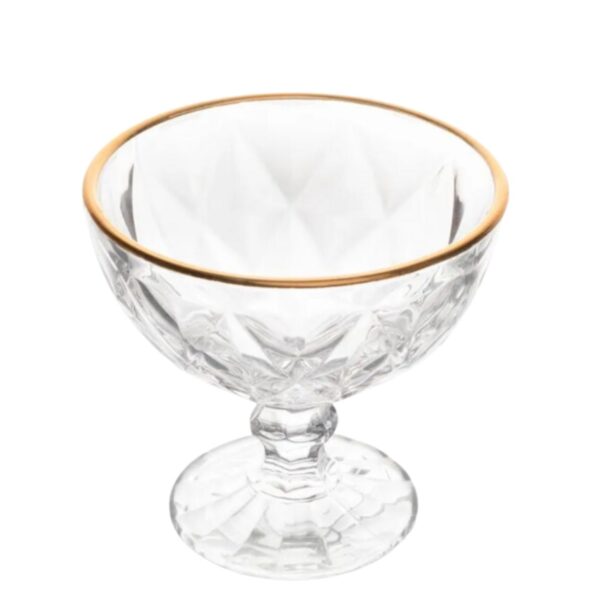 Taça para Sobremesa Diamond Transparente 6un com Fio de Ouro Uma ótima opção que oferecemos à você é o conjunto de taças para sobremesa Diamond. Confeccionadas em vidro, elas possuem um acabamento rico em detalhes e um design único que irá transferir muito mais elegância a sua sala de jantar. De vasta largura, ela é ideal para o servir deliciosas sobremesas de modo elegante e sem deixar de contribuir com a decoração do ambiente. Invista e enriqueça suas refeições!