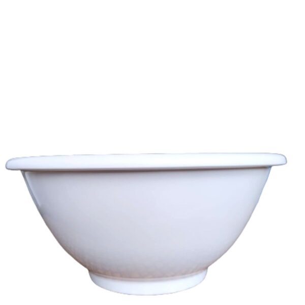 Esta Tigela não é de Porcelana, é de Melamina que é um Tipo de Plastico Duro e Resistente. São duráveis e leves podendo ser usado para Servir refeições ou mesmo como Utensílio na Cozinha para a confecção de comidas . Em lugares que as pessoas precisam de mais praticidade, na piscina, na fazenda , na churrasqueira, para crianças.Tem a cor branca e Pode ir ao microondas mas nunca ao Forno e Máquina de Lavar Louça.