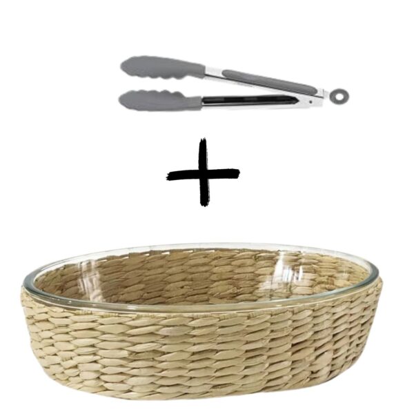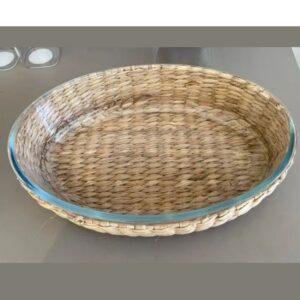 Travessa Assadeira Refratária Oval 4litros 40x28x7cm com Suporte de Rattan