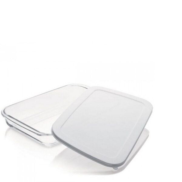 Travessa com Tampa Retangular em Vidro 3L 39x24cm Hercules