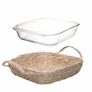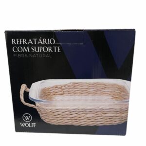Travessa e Assadeira Refratárias 1un 21x19x6cm com Suporte de Fibra Natural Wolff
