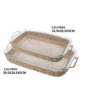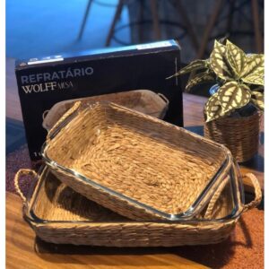 Travessa e Assadeira Refratárias 2un com Suporte de Fibra Natural Wolff