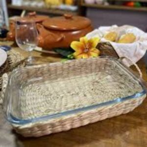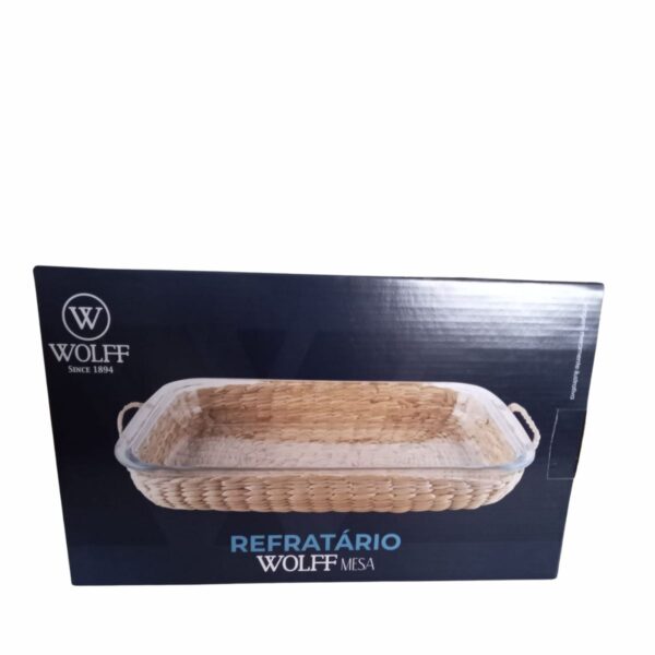 Travessa e Assadeira Refratárias 39,5x24x6cm com Suporte de Fibra Natural Wolff