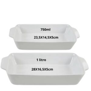 Travessa e Assadeira Refratárias Porcelana Branca com Alça 2un