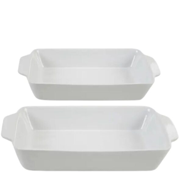 O conjunto de 2 travessas e assadeiras refratárias da linha Basic é uma opção prática e elegante para sua cozinha. Feitas de porcelana branca de alta qualidade, elas são resistentes e duráveis.