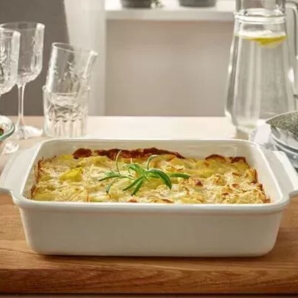 A porcelana refratária da qual as travessas e assadeiras são feitas permite que elas sejam levadas diretamente do forno para a mesa, mantendo os alimentos quentes por mais tempo. Elas são resistentes a altas temperaturas e podem ser utilizadas tanto em fornos convencionais quanto em micro-ondas.