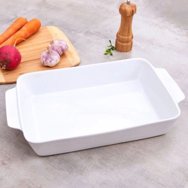 Travessa Refratária 1un Porcelana Branca com Alça 23,5×14,5x5cm Lyor