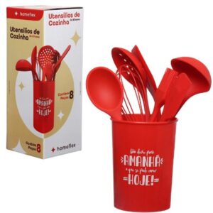 Os Utensílios de Cozinha de Silicone Vermelho da marca HausKraft é um conjunto de 8 peças fabricadas em silicone de alta qualidade, que oferece resistência e durabilidade.