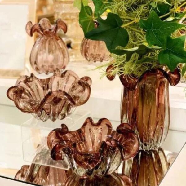 Este vaso é uma obra-prima de vidro, com acabamento impecável e durabilidade excepcional. Seu formato curvado exibe uma suave elegância, conferindo ao ambiente uma atmosfera acolhedora e delicada.
