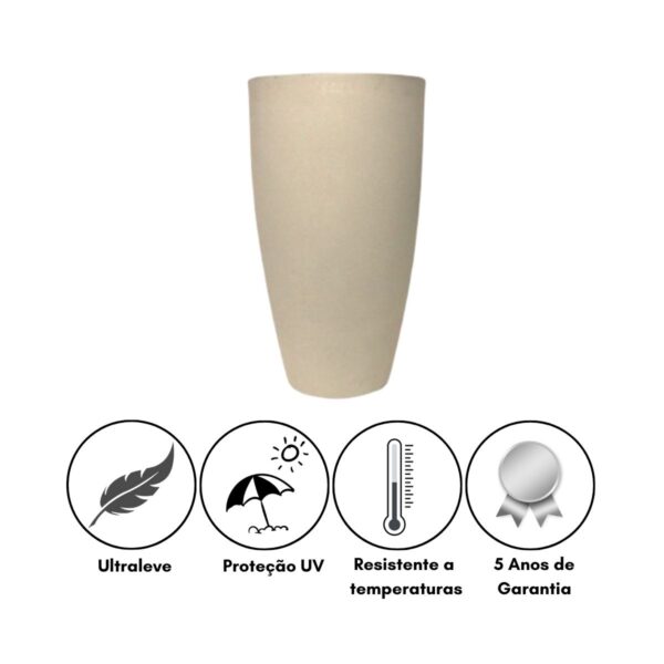 – 1 vaso médio: 50cm altura x 29cm diâmetro x 24cm boca e Peso: 1 kg