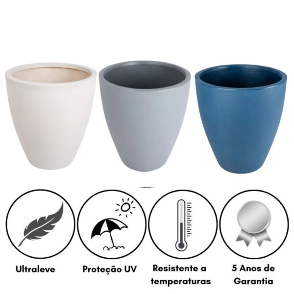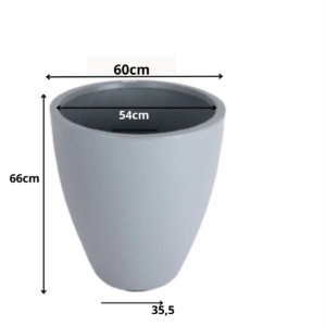 Composição: 1un vaso 66cm de altura x 36cm de base x 54cm de boca x 60cm de diâmetro – Peso: 3kg