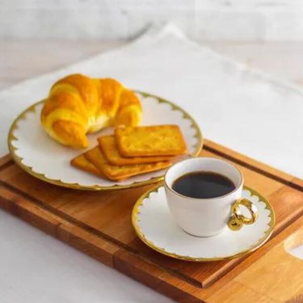 Sirva em grande estilo este Jogo para Lanche contendo 01 Jogo Xícara para Chá com 6 un 200ml sendo 6un Xicara e 6un Pires e 6un Prato para Sobremesa de 19cm diametro., da linha EGG .Feito de porcelana na cor branca com detalhes dourados e de marca renomada Wolff. Este conjunto possui charmosos detalhes dourados que enriquecem a decoração da sua mesa. Informações do Produto Marca Wolff Modelo EGG.