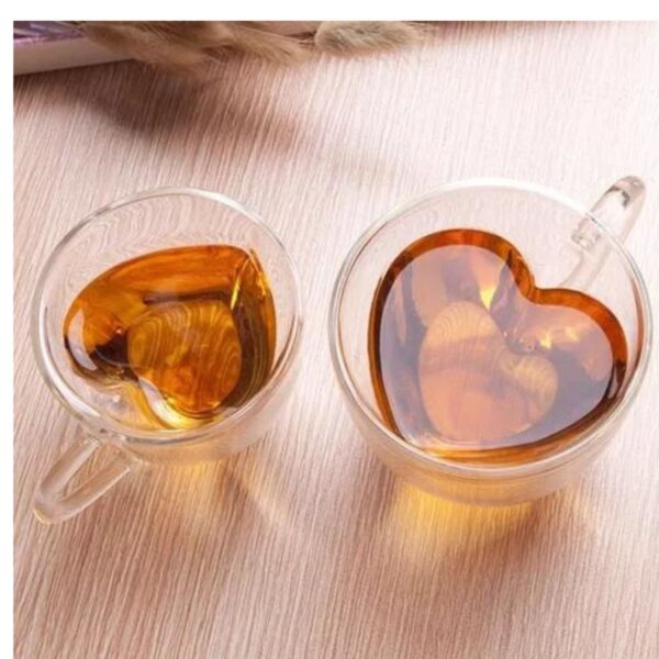 Xícara para Chá Dupla Coração Parede de Vidro 250ml 2un Mimo Style