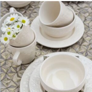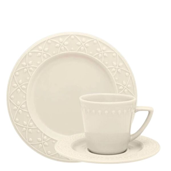 Xícara para Chá e Prato Sobremesa 12pç Mendi Marfim Oxford