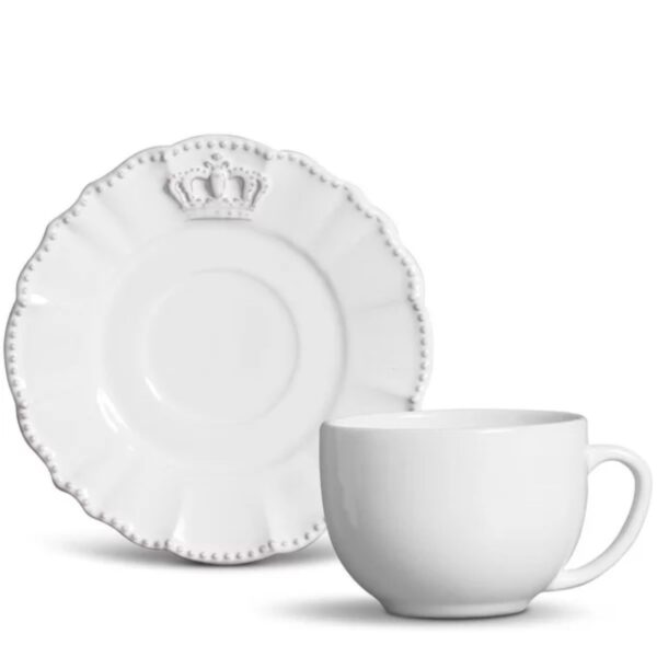 Xícara para Chá e Prato Sobremesa 12pç Windsor Branca Porto Brasil