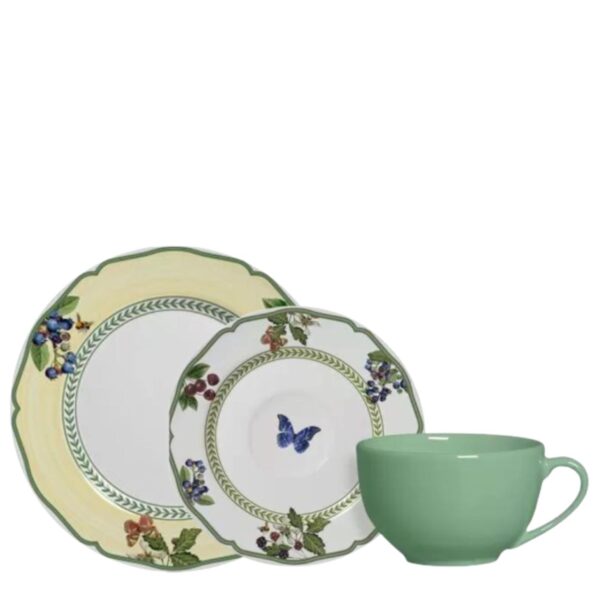 Aparelho de Jantar e Chá 42pçs Charming Azul Porcelana Borda Ouro L`Hermitage