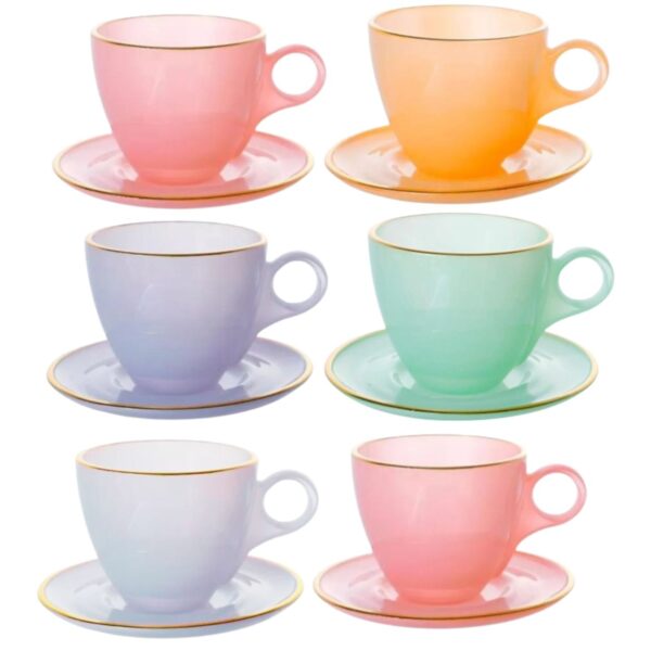 As xícaras são coloridas em tons vibrantes tornando-se um conjunto divertido e alegre para servir bebidas em qualquer ocasião. Além disso o material é resistente e durável, tornando essas xícaras ideais para uso diário ou em ocasiões especiais.